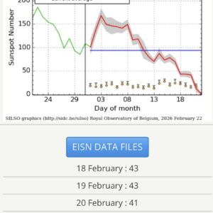 Sedan igår kväll (21 feb 2026) har solen varit fläckfri. Om ingen fläck dyker upp under dygnets lopp kommer det internationella solfläckstalet idag att bli noll. Senast detta hände var 9-11 december 2021.
