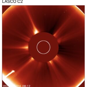 Solsnuddarkometen C/2026 A1 (MAPS) håller fortfarande ihop, vilket framgår av denna bild från LASCO C2 som togs på påskaftonen klockan 10:12 svensk sommartid.