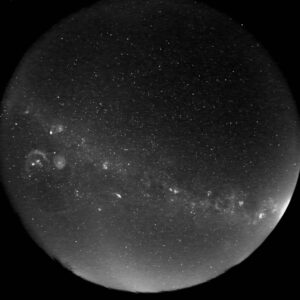 Jag fotograferade även det Lilla Magellanska molnet. Man ser att det är kraftig grön skyglow i bakgrunden.