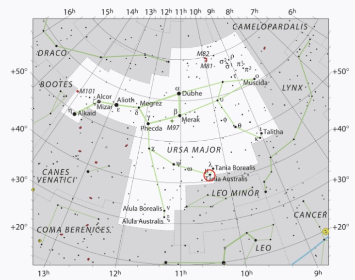 På morgonkvisten den 6 oktober passerar kometen nära Tania Australis (My UMa) i den stora björnens ena fot. Hoppas den inte blir söndertrampad!