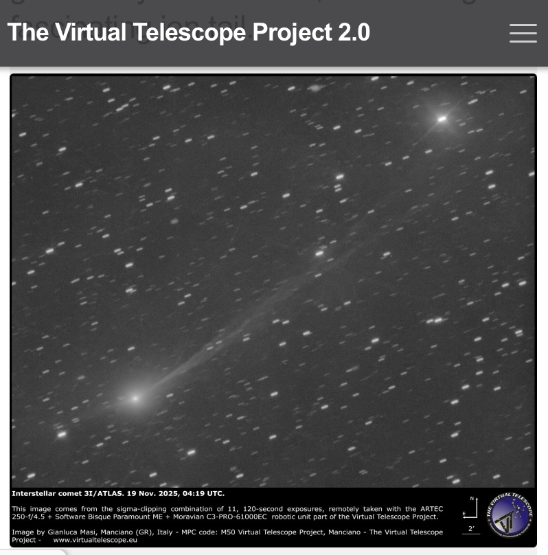 Den interstellära kometen 3I/ATLAS är nu försedd med en lång vindlande jonsvans, inte alls oväntat.