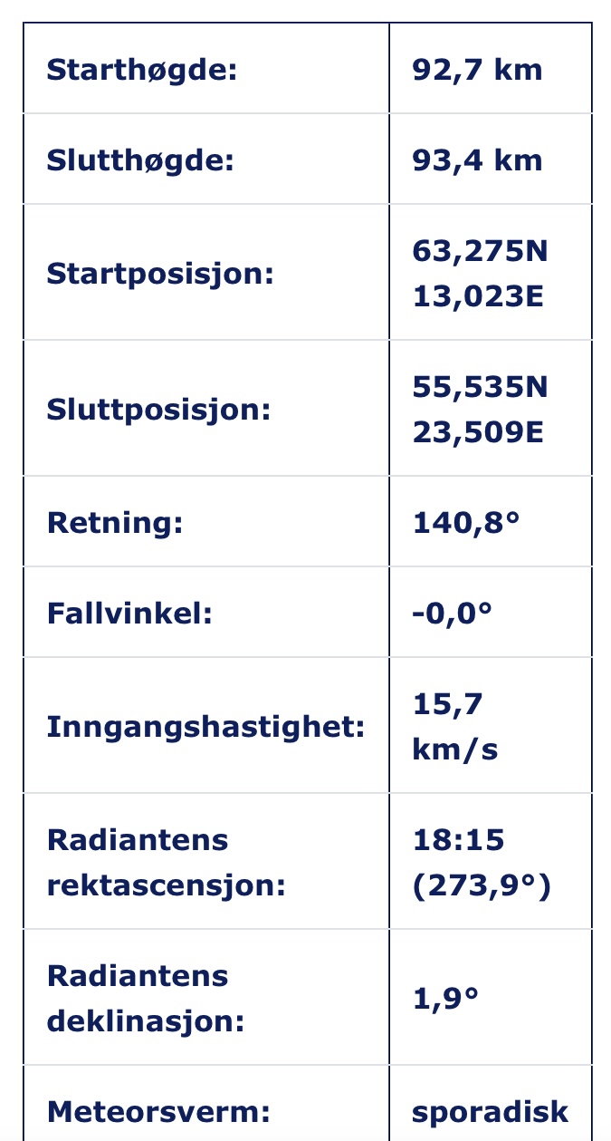 Klipp från det norska meteornätverkets hemsida bifogas.