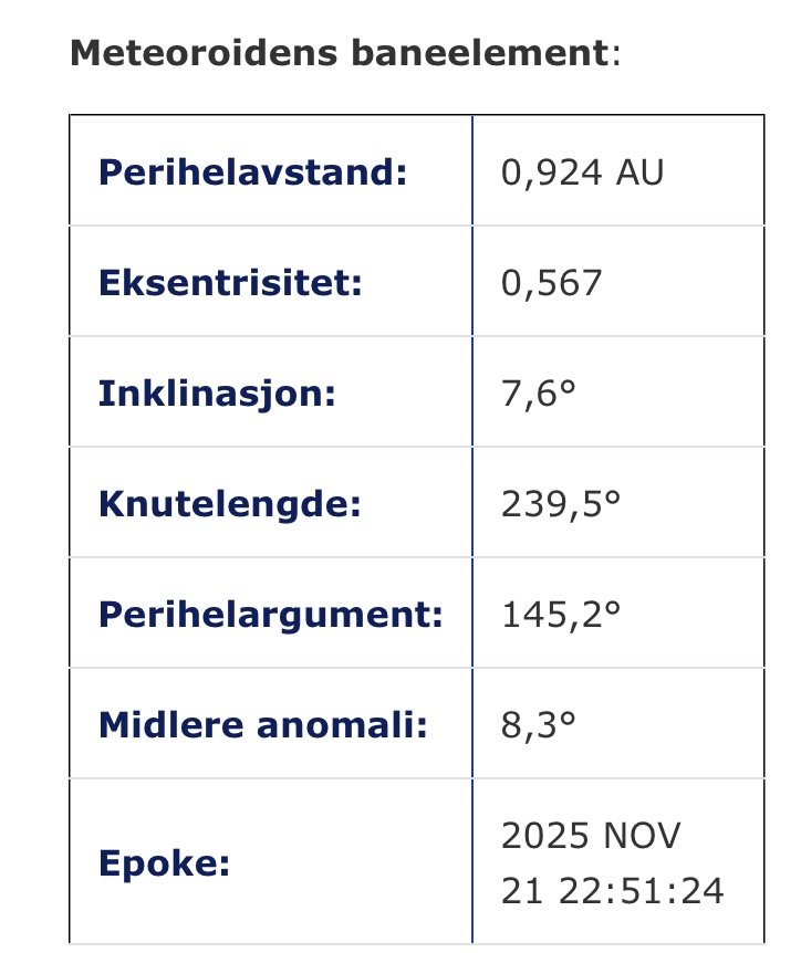 Svar till: Surfande meteoroid den 21 november 2025