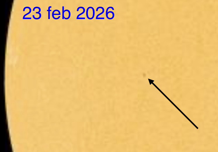 Idag den 23 februari är solen definitivt inte fläckfri, en liten men tydlig fläck har bildats. Se aktuell solbild.