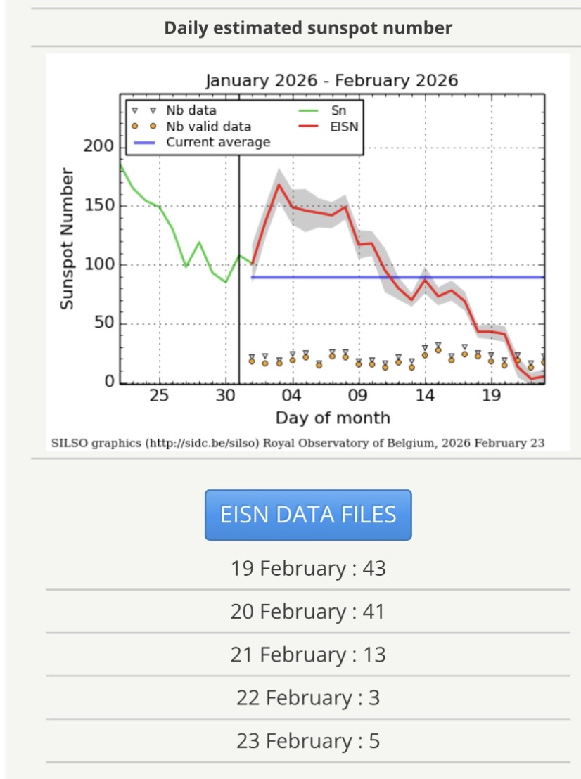 Den 22 februari noterade NOAA en fläckfri sol. Men inte SILSO. Skillnaden beror på att olika obsdata används. SILSO tar med även ytterst små fläckar (porer), det gör inte NOAA.