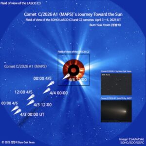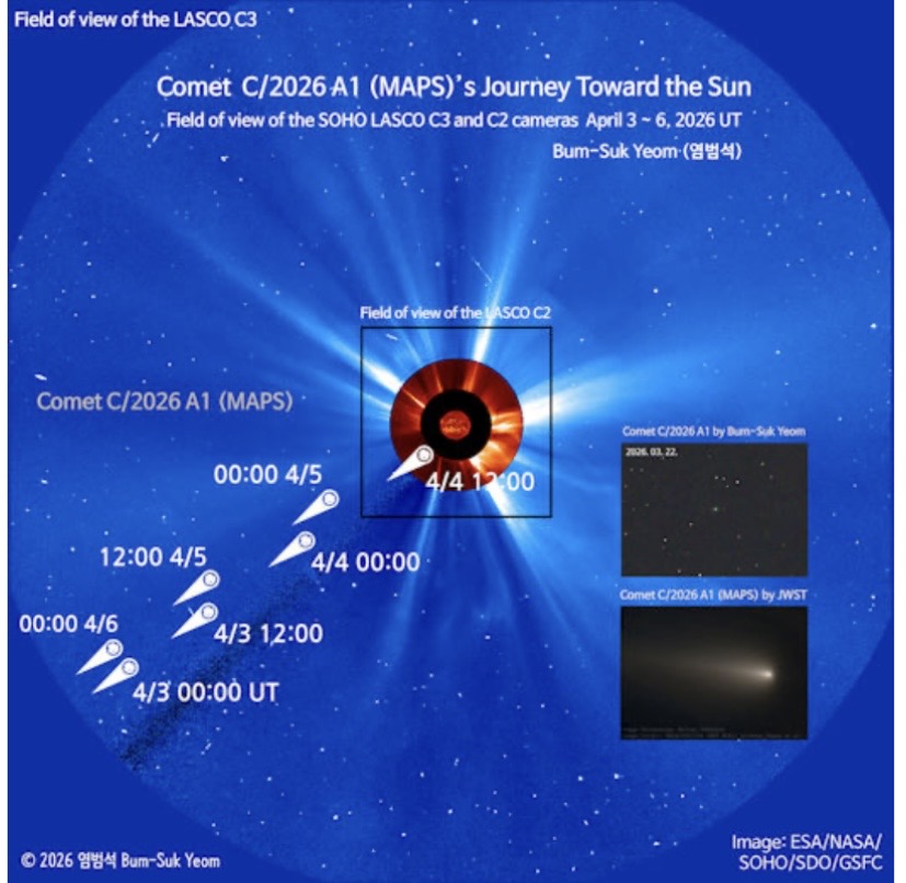 I morgon den 3 april kan vi följa hur kometen C/2026 A1 (MAPS) närmar sig solen, förutsatt att den inte splittras redan idag. Om kometen överlever även passagen den 4 april så kan vi eventuellt se även fortsättningen den 5 april.