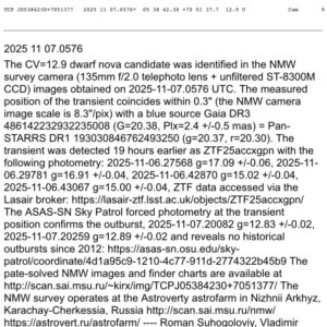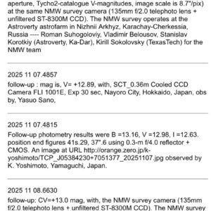 Excelarket med aktuell information om de 50 bortglömda mirorna är nu uppdaterat med data till och med tredje kvartalet 2024. Som tidigare har jag noterat tidpunkter för maximum och minimum samt uppdaterat mirornas O-C diagram, perioder och färgindex. För tredje kvartalet noterades 17 nya naximum och 13 nya minimum. Sedan projektet startade har vi nu totalt observerat 1509 max och min för de här 50 mirorna.