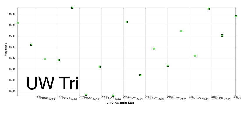 Dvärgnovan UW Tri (typ UGWZ) befinner sig i utbrott.
