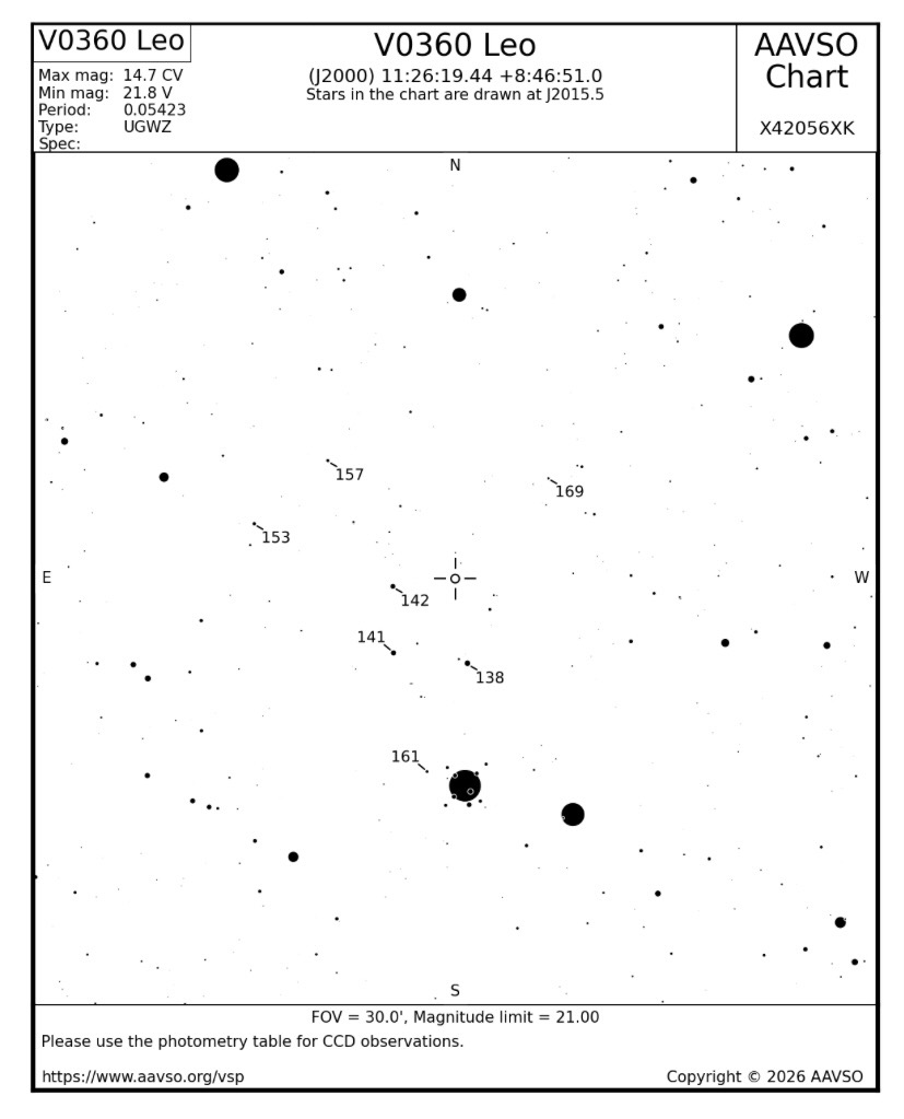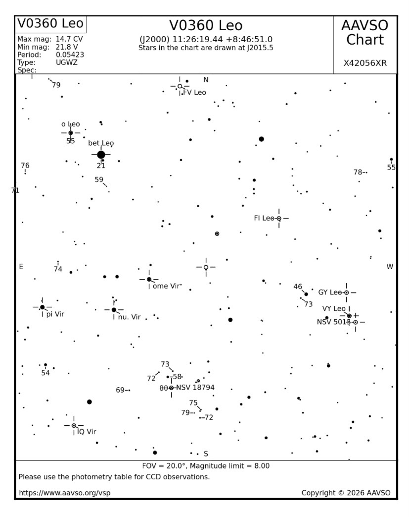 Hem › Observationer › Variabla stjärnor › Dvärgnovan V0360 Leo i sällsynt utbrott (mag 14)