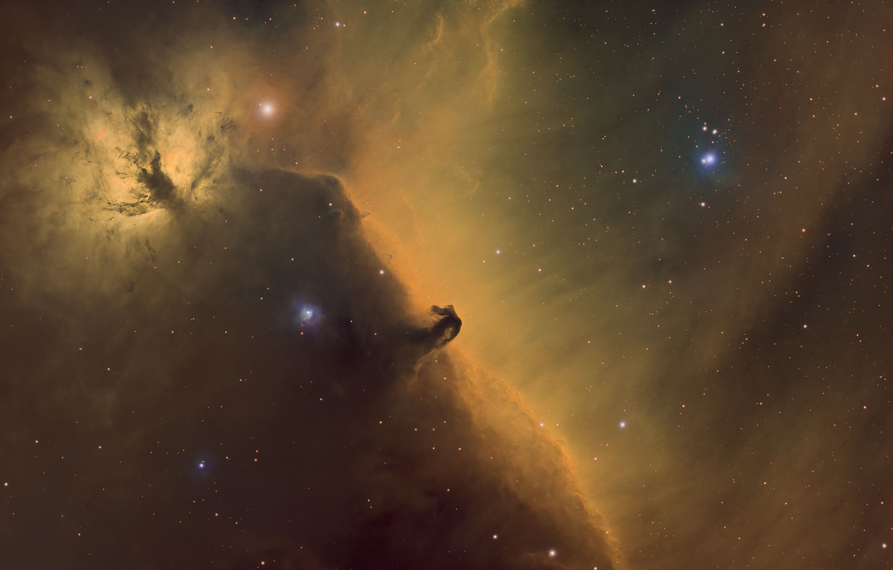 Taget från Stockholms innerstad i Bortle 9,Objekt: Hästhuvud- och flamnebulosan i SHO