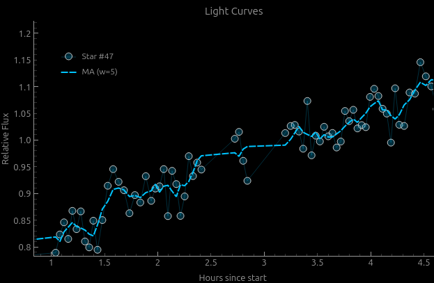 Letade exo transitar den 09 mars och vid analys av bilderna dök denna kurva upp.