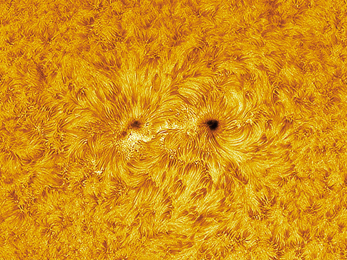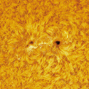 AR 4419 är den större solfläcksgruppen och den mindre AR 4415 syns nere till höger.Objekt: Solen
