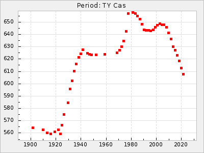 2010-2023: minskning till 610 dagarTY Cas kanske ska läggas till i den exklusiva skaran Miror med stora periodförändringar?